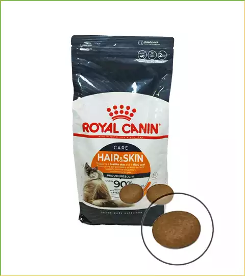 غذای خشک Hair & Skin Care Royal Canin، غذای خشک مخصوص گربههای بالغ با پوست حساس و موی خشک؛ کمک به سلامت پوست و درخشندگی مو با امگا ۳ و امگا ۶