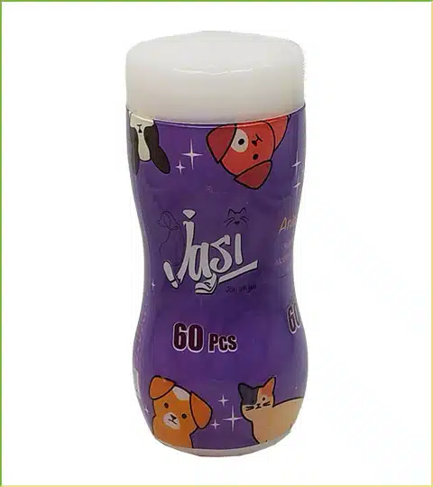 دستمال مرطوب جاسی، پاککنندهای ملایم، بدون الکل و پارابن برای سگ، گربه، پرنده، جونده و خزنده است.