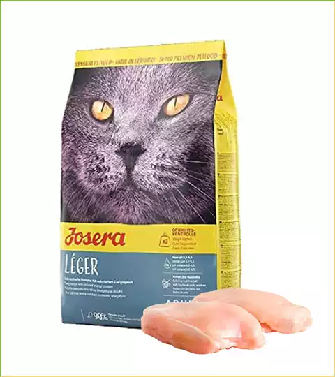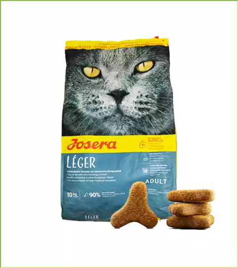 غذای خشک Josera Leger، غذایی سوپرپرمیوم با کالری کم که به مدیریت وزن، سلامت دستگاه ادراری و دفع گلولههای مویی کمک میکند.
