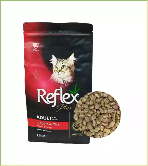 غذای خشک Reflex Plus Gourmet با طعم بره و برنج به حفظ سلامت، درخشندگی مو و عملکرد گوارشی کمک میکند.