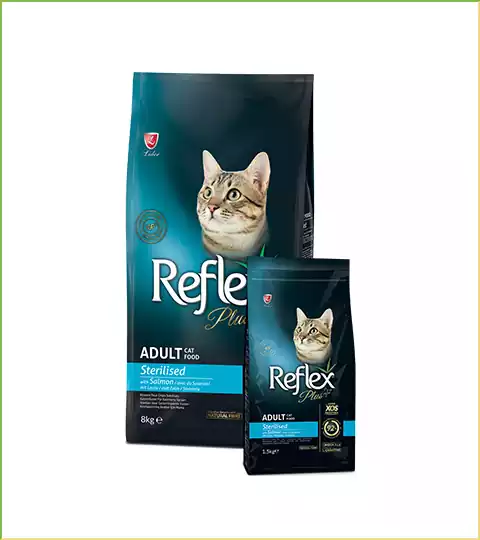 غذای خشک Reflex Plus Sterilised Adult با سالمون برای گربههای بالغ عقیمشده، با پروتئین با کیفیت و ترکیبی متعادل برای حفظ وزن ایدهآل و سلامت دستگاه ادراری